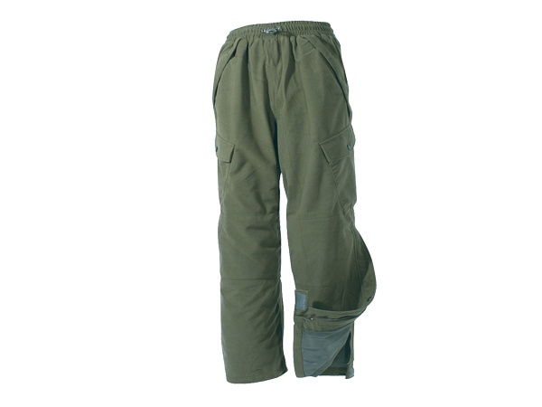Ūdens necaurlaidīgas mednieka bikses, kas šūtas no membrānas materiāla. Vispusīgi ūdens necaurlaidīgas un tajā pašā reizē "elpojošas". Ērtas, mīksta poliestera, kas mazina čaboņu. Iekšā iešūts ventilācijas tīkliņš. Divas aiztaisāmas un no mitruma pasargātas kabatas. Bikšu apakšā 35 cm rāvējslēdzēji, kas atvieglo bikšu uzvilkšanu uz vēl vienām biksēm. Ceļgalu un dibena apvidus papildus nostiprināts. Elastīga jostas vieta.