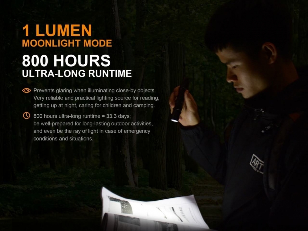 Baterijas: ARB - L1S baterija (komplektā) , viens 18650 akumulators vai divas CR123A baterijas (nopērkamas atsevišķi)