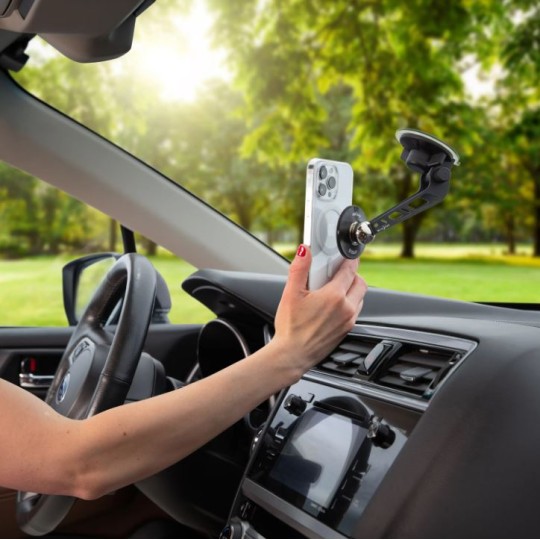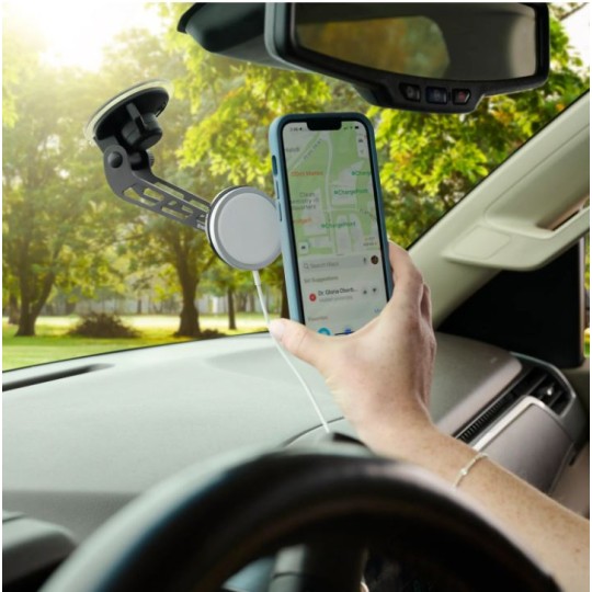 Orbiter Plus magnētiskais stiprinājums lieliski pielīp MagSafe iPhone, korpusa vai lādētāja magnētiem.