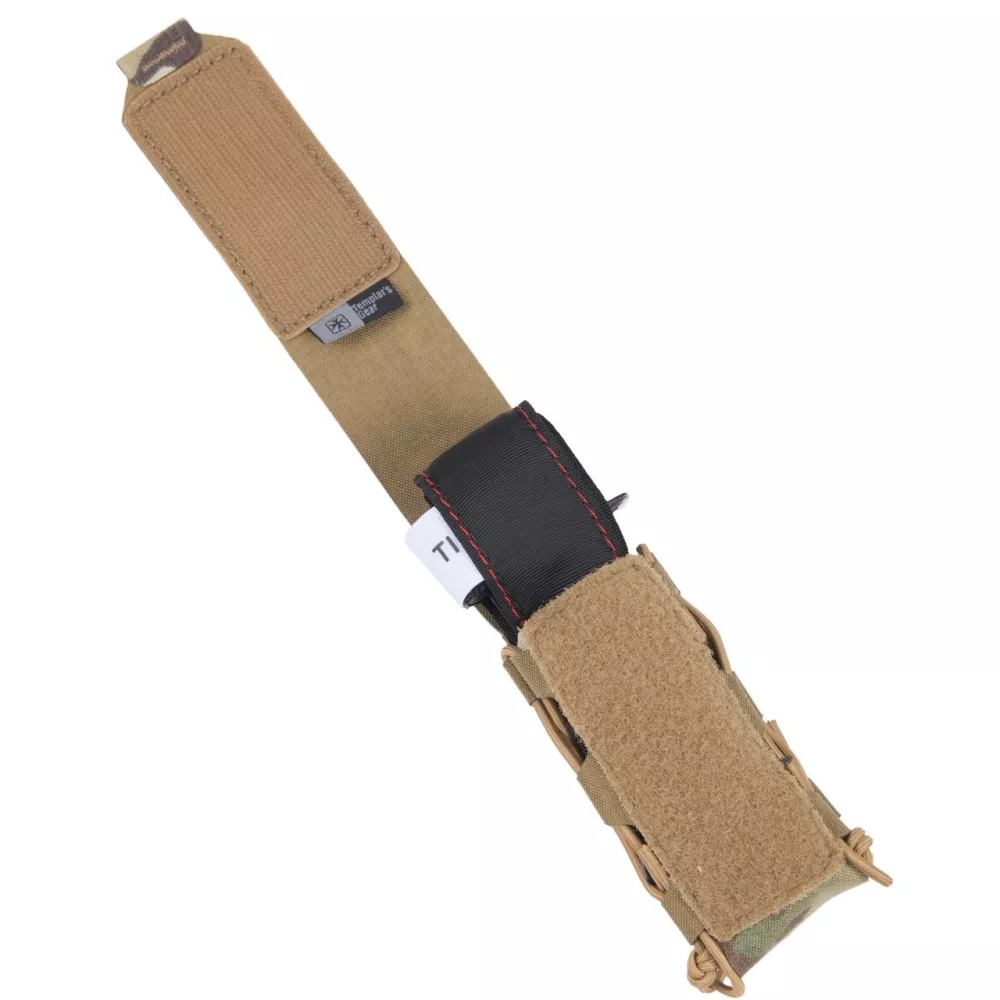 Templars Gear Tourniquet Pouch ir vienkāršs medicīniskais maciņš, kas ir būtisks taktiskā un šaušanas aprīkojuma elements.Elastīgs dizains ar svarīgu elementu elastīgu auklu savienojošos paneļus sānos. Tas stabilizē un neļauj nejauši izkrist.Maciņu var piestiprināt pie jebkura vestes vai jostas MOLLE paneļa. Papildus ir iekļauts velcro panelis, kas ļauj piestiprināt maciņu pie vestes vai taktiskās jostas, izmantojot velcro.