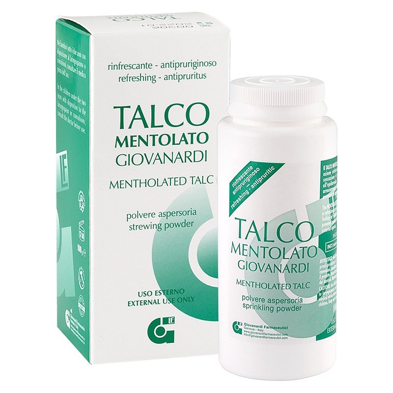 Giovanardi Mentholated Talc ir pulveris ar mentolu, kam piemīt atsvaidzinoša iedarbība, sniedzot ādai patīkama svaiguma sajūtu.