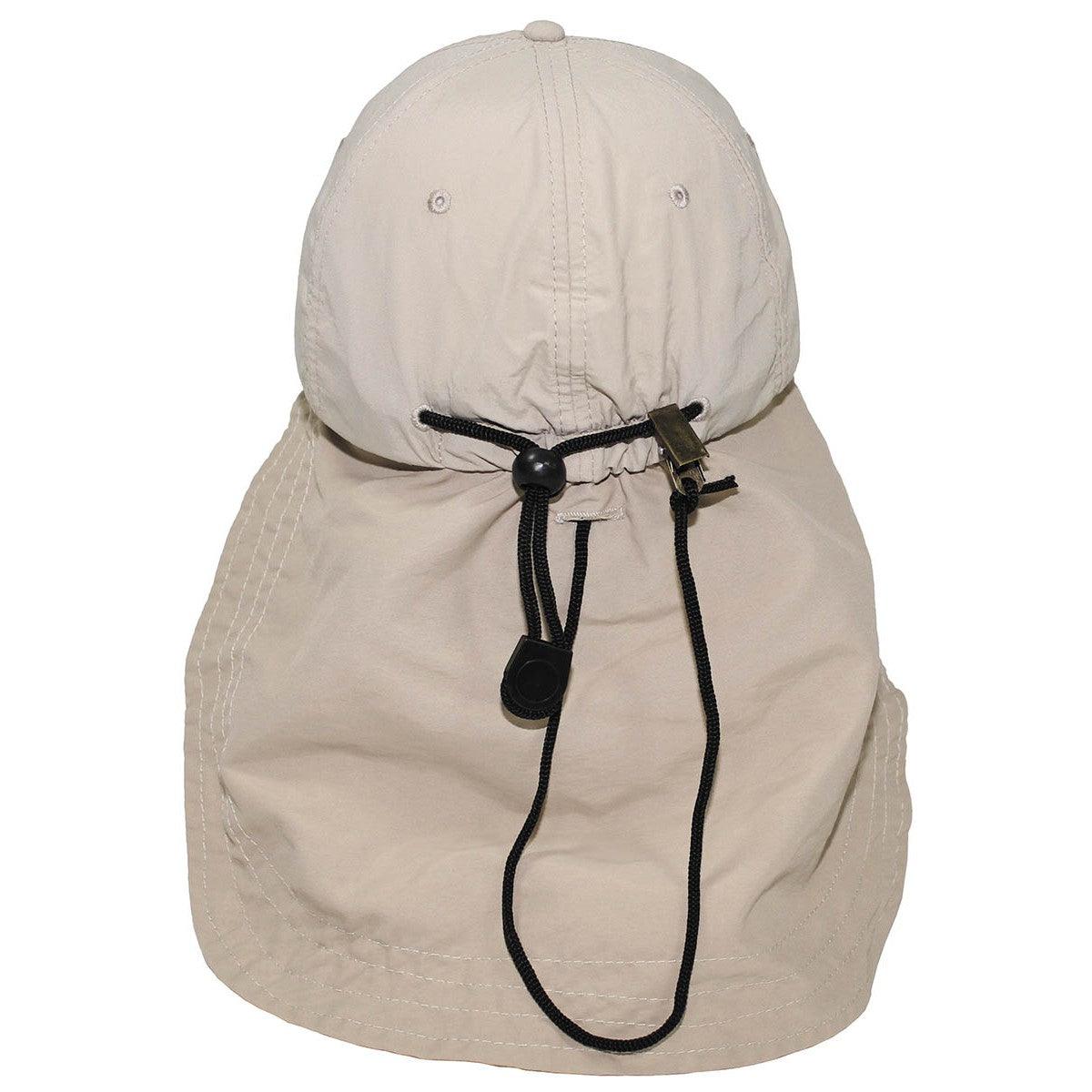 Fox Outdoor "Sahara" cepure ir praktiska, ar garu kakla aizsargu un iekšējo kabatu ar rāvējslēdzēju. Pastiprinātas šuves un sviedru izturīga frotē lente nodrošina izturību un komfortu. Elastīgā kakla siksna un savilkšanas aukla nodrošina pielāgotu piegulšanu. Cepure ir pieejama vienā izmērā ar lielu vizieri un trīskāršām šuvēm.