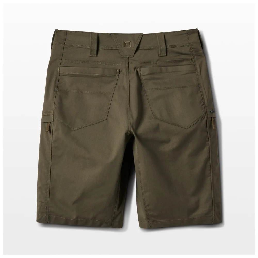 Šortu pamatā ir spēcīgas un ērtas 5.11 Apex bikses. Tam ir tāds pats funkcionāls dizains, kas ir lieliski piemērots darbam un atpūtai. Izgatavots no īpaši izturīga un elastīga Flex-Tac auduma. Priekšējo kabatu malas ir pastiprinātas ar neilonu – piemērotas naža pārnēsāšanai. Sānu kabatu iekšpusē iešūti nodalījumi AR tipa aptverēm. Vidukļa priekšpusē ir iešūta slēpta kabata vienreizlietojamiem rokudzelžiem vai citiem maziem priekšmetiem. Elastīga un ērta jostasvieta, septiņas spēcīgas jostas cilpas, kājstarpes šuve un veidoti ceļgali nodrošina pilnīgu kustību brīvību. Teflona pārklājums pasargā no traipiem, šķidrumiem un netīrumiem.
