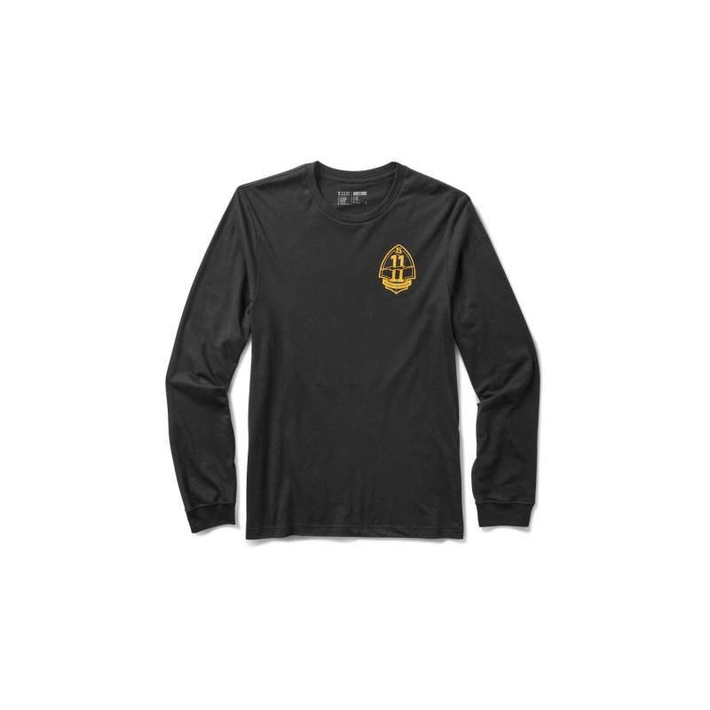 5.11 T-krekls ar garām piedruknēm, kas izgatavots no viegla kokvilnas un poliestera maisījuma ar mitrumu novadošām īpašībām.