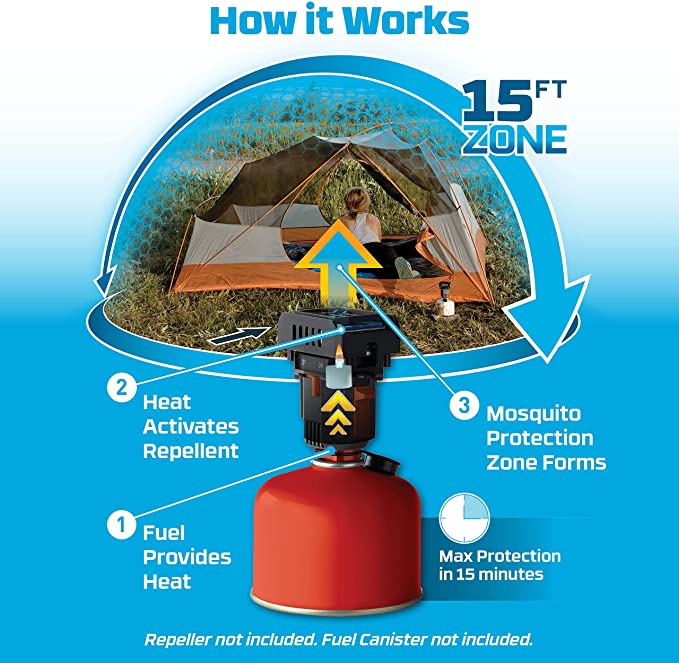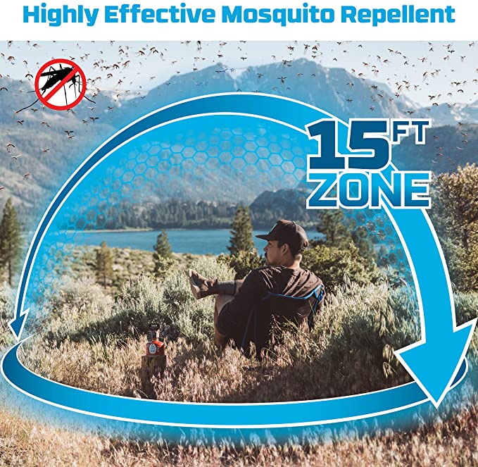 - Aizsargierīce veido 4,6 x 4,6 m (~ 21 m²) lielu aizsargzonu pret odiem (knišļiem, odiem, melnmušām un citiem lidojošiem kukaiņiem