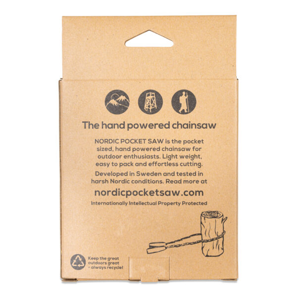 Lai maksimāli palielinātu jūsu Nordic Pocket Saw kalpošanas laiku, ir svarīgi uzturēt ķēdi tīru, ieeļļot to ar motorzāģa eļļu un uzasināt, izmantojot 4 mm apaļo vīli.