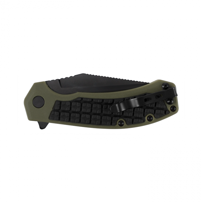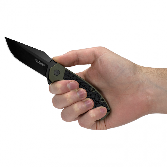 Kershaw Faultline - maz, ērts un praktisks nazis. Spēcīgs un plats asmens, kas izgatavots no 8Cr13MoV tērauda - izturīgs pret koroziju, labi noturē asumu un viegli asināms. Pārklāts ar melnu pretkorozijas pārklājumu. Ērts rokturis no videi nekaitīga GFN polimēra, neslīdošs. Izmanto KVT sistēmu.