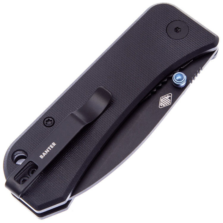 Banter, saliekamais nazis no We Knife, apvieno klasiskus un mūžīgus dizaina elementus ar modernu konstrukciju un materiāliem, padarot Banter par lielisku izvēli ikdienas nēsāšanai. Asmens drop- point tipa un izgatavots no S35VN tērauda. Liner-lock ir atbildīgs par asmens nostiprināšanu atvērtā stāvoklī. Ass blokā ir uzstādīts keramikas lodīšu gultnis.