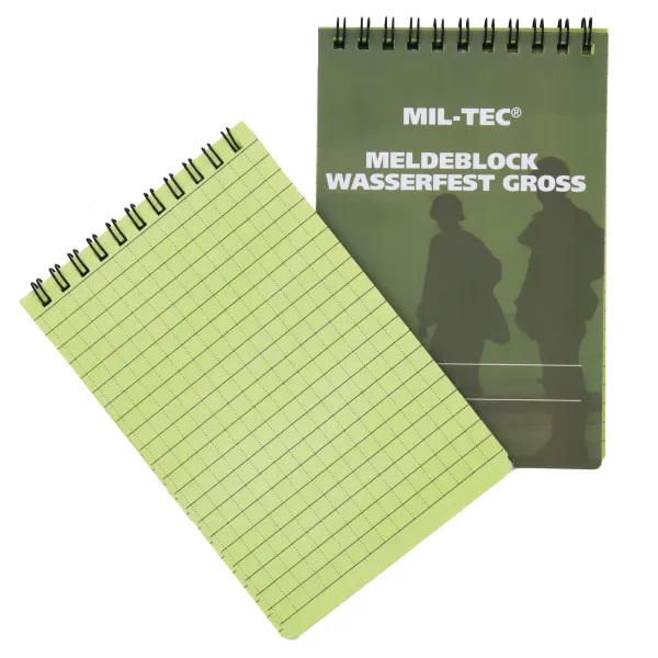 Mitrumizturīgs pierakstu blociņš, ko var lietot mitrā apkārtnē vai līstot. Rakstot ar parastu rakstāmvielu pieraksti paliek pat tādā gadījumā, ja grāmatiņu iemērc ūdenī.